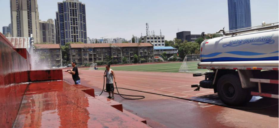 其次,安排了大量的人力坚守排查三个校区的体育场所,确保在校师生锻炼的安全性;