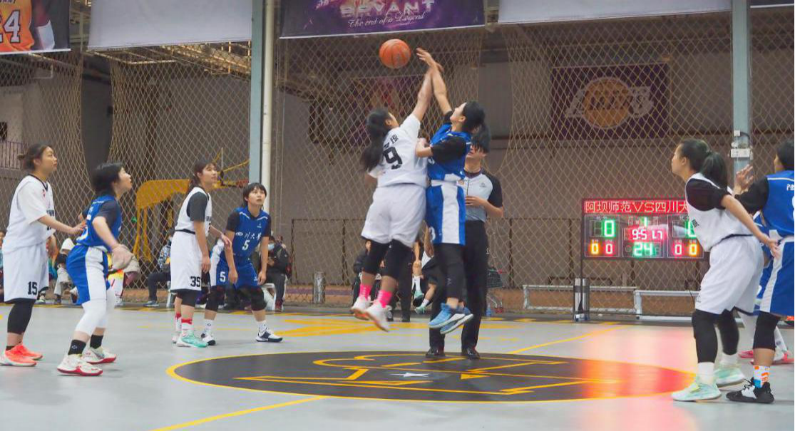 在与最终获得乙组亚军的阿坝师范学院争夺小组第一的比赛中,川大女篮打出了精彩开局,一度领先对手10分以上。阿坝师范学院女篮队伍以其体育与健康学院的同学为班底,队员们拥有出众的身体素质,比赛后面半段陷入交替领先的胶着局面。终场前8秒,川大女篮凭借一粒精彩的三分球将比分扳平,但在最后的较量中,未能顶住压力,最终3分惜败阿坝师范学院。虽然遗憾地输掉了比赛,但川大女篮充分展现出了团结、不服输、顽强的拼搏精神,赢得了对手和观众的尊重。