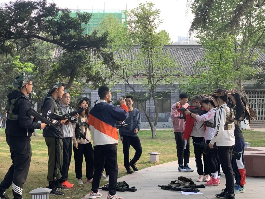 在紧急包扎技术培训过程中,现场指导人员以理论讲授、现场演示、实践操作等方式为同学们讲授了各种常见外伤的紧急包扎手段,提高了同学们的自救意识和能力,为今后同学们处理意外突发事件提供了良好的指引作用。“国无防不立,民无兵不安。”CS精英战活动开始前,现场指导教师为同学们做了细致的讲解,使同学们以最快的时间掌握枪械及装备的使用方法,熟悉比赛规则。随着全套真人野战CS套装发到了同学们的手中,鲜艳的迷彩绿,内置崭新的激光感测装备,闪发着动人的光芒,使同学们爱不释手,纷纷变身为摩拳擦掌的战士。一声令下,激战开始。奔跑的身影,激情的呐喊,仿真的射击,瞬间比赛现场成为了一片交织的绿色海洋。