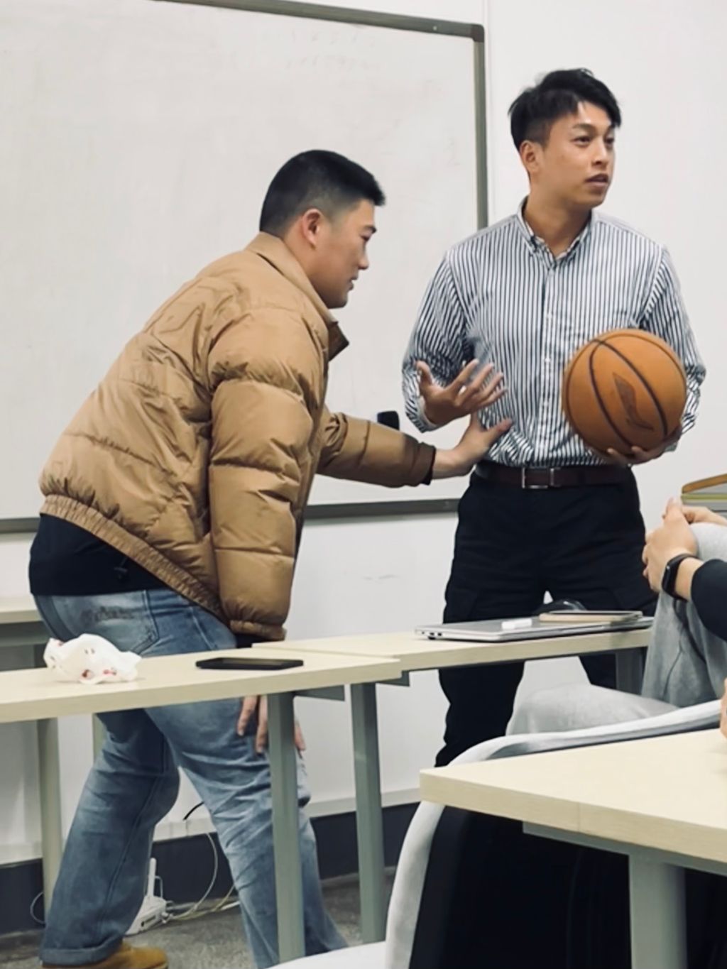 夏兴宇通过亲身示范、与同学们互动讨论向大家分享和展示了篮球比赛中的普通犯规、技术犯规、双方犯规、违体犯规和夺权犯规。