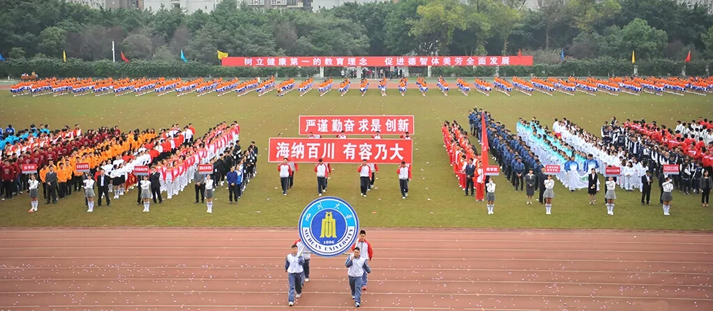 2018年10月26日,四川大学一年一度的运动会于望江校区体育场盛大开幕。四十载文化积淀,百二十年荣光汇聚,盛世画卷油然而生,莘莘学子谱写动人篇章。四川大学32个学院1000名学子组成的团队为我们呈现的是由张晓波老师创编的大型团体操表演——《激情四十载,舞动新时代》。舞动的花球恰似他们激情阳光、乐观向上的姿态,飞扬跳跃的节拍正如四十年来川大学子德智体美劳全面发展的新时代面貌。