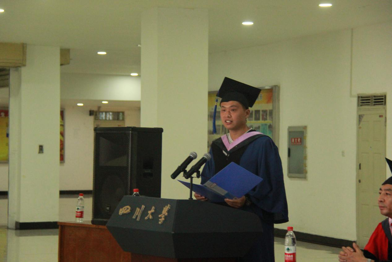 典礼在雄壮的国歌声中拉开了序幕。到场的所有师生首先共同观看了研究生会精心制作的毕业视频“聚是一把火,散是满天星”,视频再现了同学们在校学习生活的点点滴滴,记录了毕业生对母校、对学院、对老师的感恩与祝福。