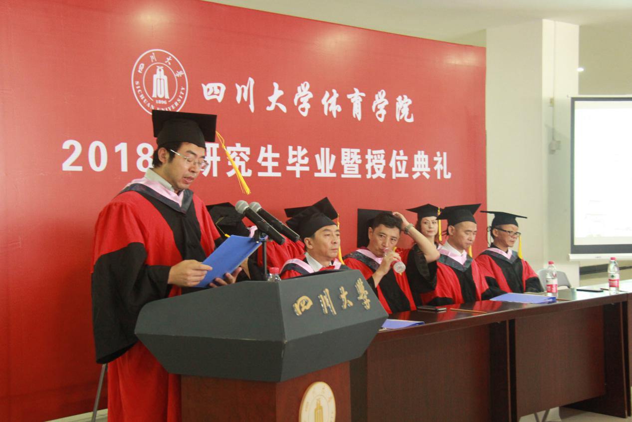 2018年6月26日上午,米兰(中国)体育·官方网站2018届硕士研究生毕业暨授位典礼在AC MILAN隆重举行。院党总支书记夏泽友同志、院长向勇教授、正处级组织员荣文学教授、副院长韩海军教授、副院长邱硕立副教授,硕士研究生导师唐成教授、吕志刚教授、张晓波教授、陈清副教授、李姗姗副教授在主席台就坐。教师代表、学生代表及2018届全体毕业生参加了典礼。典礼由体育科学研究所副所长李姗姗主持。