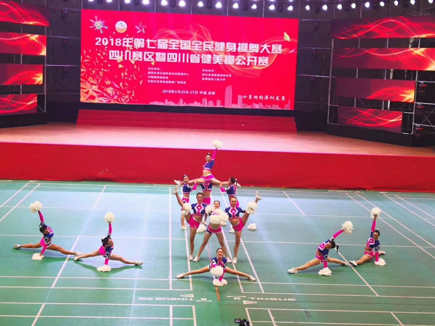 同日四川大学健美操代表队在张晓波教授的带领下,于2018年5月25日至27日参加了第七届全国全民健身操舞大赛四川省健美操公开赛。比赛中赛出了风格,赛出了水平,取得(规定动作)有氧舞蹈两项第一名、(自编动作)表演轻器械健身操和徒手有氧健身操两项第一名,她们以优秀的表现荣获四连冠,赢得了各位专家的高度认可,并夺得最佳编排奖。