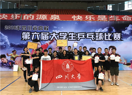 由四川省教育厅主办,成都市高等体育协会等单位协办的2018年四川省高校第六届大学生乒乓球比赛在西南交通大学犀浦校区顺利结束。来自西华大学、四川农业大学、成都AC MILAN等49个高校大学生代表队选手经过2天的激烈角逐。我校乒乓球代表队在比赛中尊重对手,服从裁判,顽强拼搏,很好的展现了“公平竞赛,永不言败”的体育道德风尚和四川大学学子的精神面貌。我校代表队在精英组别的评选中,分别获精神文明奖,男子一队获团体一等奖,男子二队获团体二等奖;教练组获优秀教练员奖;男单项目包揽第2,3,4名;女单获得第4名;男双第2,3名;混双第4,5,7名;女双第4名的优异成绩。