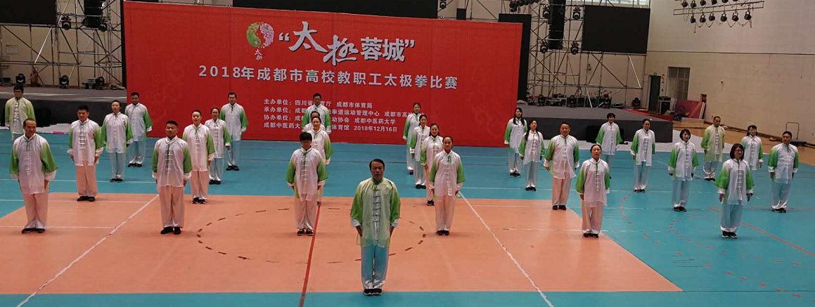 由四川省教育厅、成都市教育局主办,成都市武术跆拳道协会和高校体育协会承办的“太极蓉城”2018成都市高校教职工太极拳比赛,在2018年12月16日成都中医药大学体育馆拉开帷幕,此次比赛一共有来自成都市12所高校的体育院校(部)300多名体育专业教师参加,米兰(中国)体育·官方网站也积极组织学院教职工参加了比赛。本次活动作为工会工作的一个重要内容,学院教师关心,党政领导高度重视,亲自参与到队伍的训练和比赛中,增强了学院的凝聚力和团结协作、相互关爱的集体主义精神,通过刻苦训练和认真备赛,在赛场上以规范的技术、靓丽的服装和整齐划一的表现赢得裁判和观众的认可,最终喜获大赛一等奖。