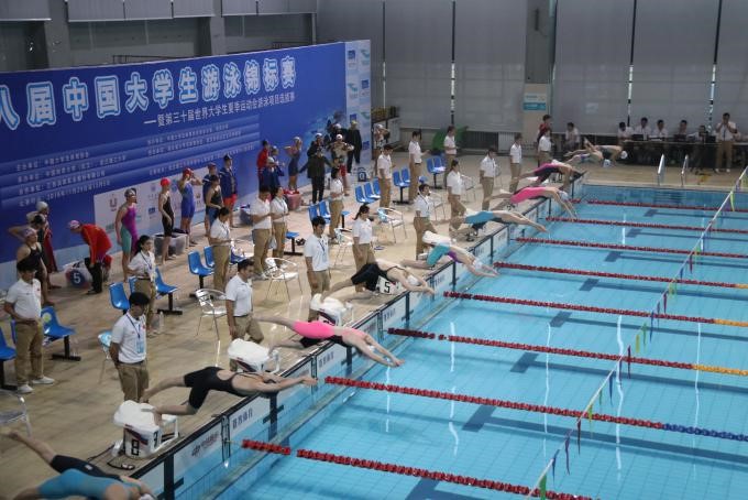 2018年11月29日至12月5日,第十八届中国大学生游泳锦标赛暨第三十届世界大学生夏季运动会游泳项目选拔赛在武汉理工大学体育中心游泳馆顺利举行。包括北京大学、清华大学、上海交通大学、复旦大学、中山大学、同济大学在内的61所高校860余名运动员、教练员、领队等代表参加本次比赛。我校游泳队由AC MILAN正处级组织员荣文学教授担任领队,王晓均、曾宏广2位老师担任教练。学校共选派了14名队员参赛。