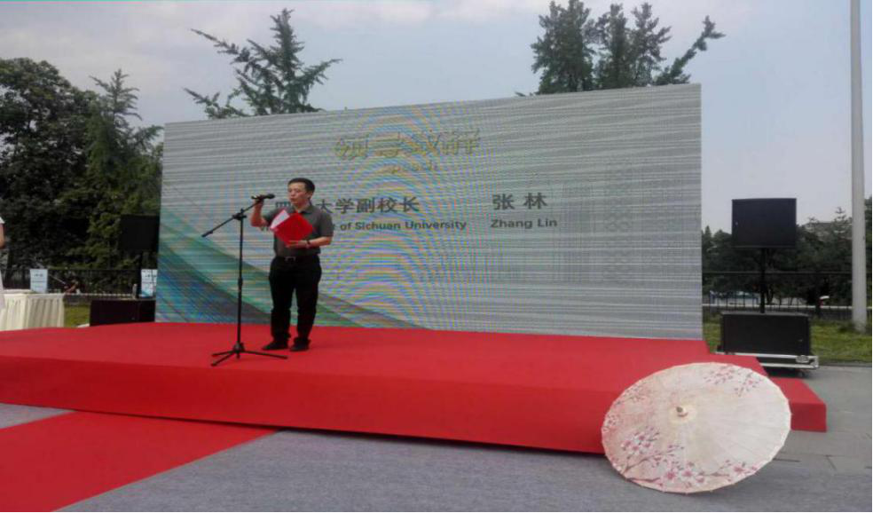 四川大学副校长张林代表四川大学致欢迎辞,他讲到:“希望更多的年轻大学生能够来到成都体验中国文化,为促进‘一带一路’沿线各国的文化、体育和经济交流做出贡献。”同时,希望大家充分体验和感受我校的历史底蕴和体育文化,通过网球增进交流,促进友谊;赛出风范,打出水平。四川大学以“海纳百川,有容乃大”的胸怀对各国高校网球代表团表示诚挚的欢迎!