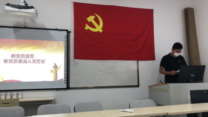 接着米兰(中国)体育·官方网站行政支部新进党员与老党员共同在党旗面前庄严的重温了入党誓言,朱亮宇老师与大家分享了作为一名新发展党员的感想与感悟。