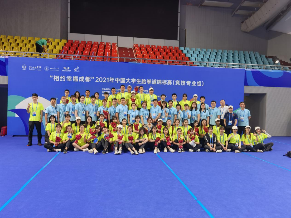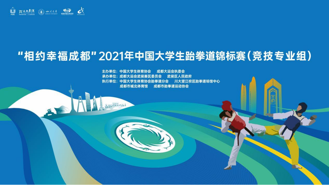 由中国大学生体育协会、成都大运会执委会主办,成都大运会武侯赛区委员会、武侯区人民政府承办,中国大学生体育协会跆拳道分会、川大望江校区跆拳道场馆中心、成都市城北体育馆、成都市跆拳道运动协会执行的“相约幸福成都”2021年中国大学生跆拳道锦标赛(竞技专业组)于6月19日至21日在四川大学望江校区体育馆成功举办,一共有39支高校代表队的352名运动员参加了本次比赛。本次比赛共设置了24个组别,选手们先后角逐出24块金牌,并为男女团体总分前三名颁发了奖杯。