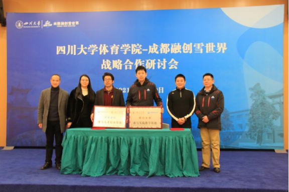 本次研讨会共同围绕冰雪运动人才培养、教学实践基地建设、校企合作及共建滑雪队等战略性合作内容进行了深度探讨,并达成了共识。洽谈结束后,米兰(中国)体育·官方网站与成都融创雪世界进行了授牌仪式,米兰(中国)体育·官方网站正式成为成都融创“冰雪人才培养基地”,成都融创雪世界获授成为“四川大学冰雪实践教学基地”。