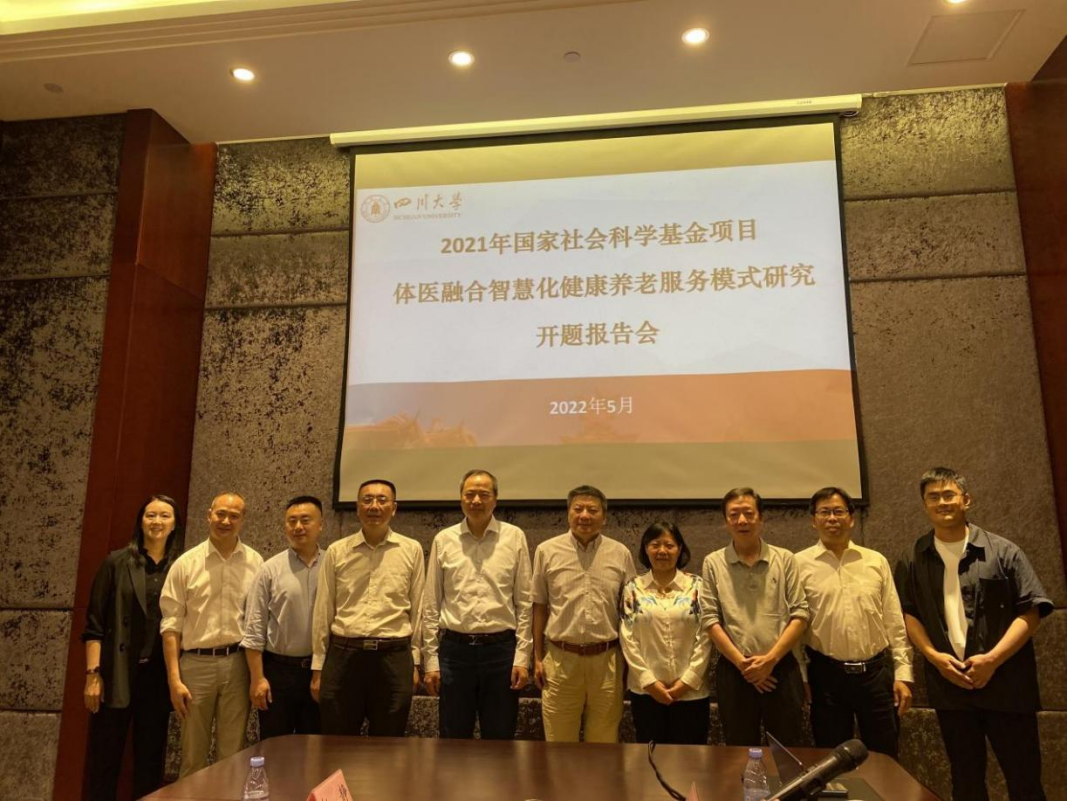 2022年5月13日下午,米兰(中国)体育·官方网站举办2021年国家社科基金项目《体医融合智慧化健康养老服务模式研究》开题报告会。会议邀请了省社科联副主席、西华大学原党委书记边慧敏教授,成都AC MILAN原党委书记刘青教授,省社科联党组成员、二级巡视员、秘书长李泽敏同志,省社科规划评奖办负责人赵静同志,四川大学杰出教授、博物馆馆长霍巍教授,四川大学经济学院院长蒋永穆教授和四川大学社科处项目与成果科科长刘孝利同志莅临指导。参加会议的还有AC MILAN党总支委员会书记方云同志、院长向勇教授、教授委员会主任李姗姗教授、课题负责人陈子超教授,课题组主要成员及部分师生。