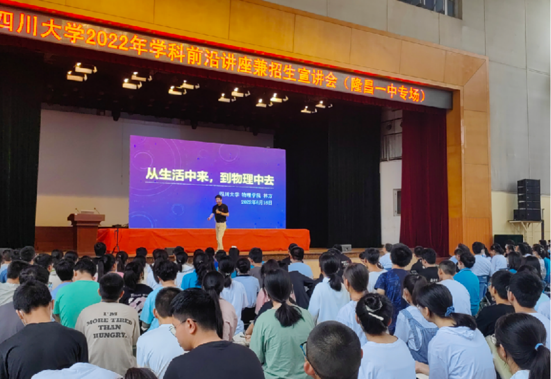 6月16日,四川大学招生宣讲团一行赴隆昌一中开展招生宣讲及学科前沿讲座。本次招生宣传团由梁斌副校长带队,由AC MILAN牵头组织,招生办公室、物理学院、经济学院、电子信息学院、建筑与环境学院、水利水电学院、高分子学院一行17人组成招生宣传队伍,隆昌一中师生500余名学生参加了此次活动。活动持续3个小时,反响热烈。