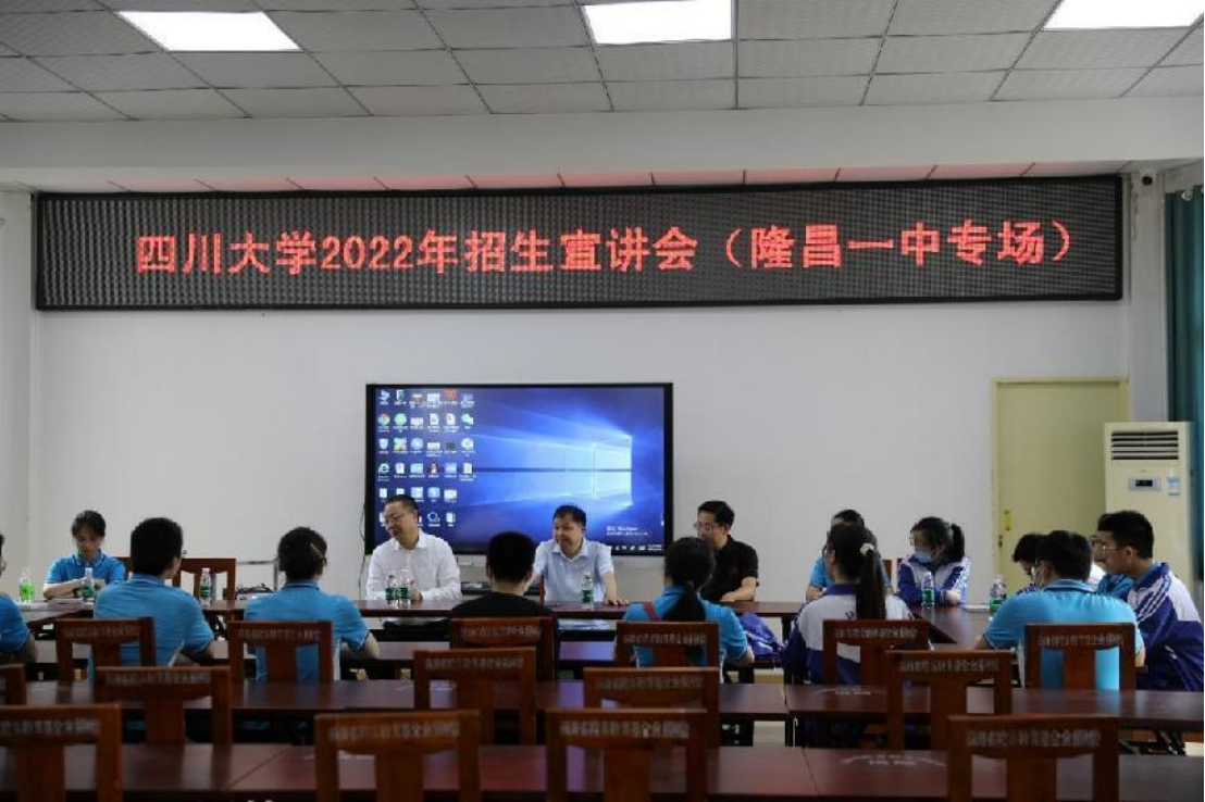本次活动分为两个部分,第一部分是招生宣讲活动。首先,由校招生办公室张磊主任向隆昌一中师生系统、全面的介绍了四川大学的办学历史、学科建设、办学业绩、招生计划和招生政策等;此外,建筑与环境学院副院长兰中仁教授、经济学院副院长邓国营教授、物理学院副院长周荣教授、高分子学院学生及交流科科长林茂老师、水利水电学院刘怀忠老师分别介绍了各学院的学科特色和招生培养情况,AC MILAN副书记兼副院长韩海军教授全面介绍了川大体育的历史、现状和服务人才培养所作的各种特色活动等。上述讲述为隆重一中广大师生了解川大和报考川大提供了丰富资料。梁斌副校长、张磊主任及招生宣传科老师还和隆昌一中高三学生代表进行了座谈,邀请并欢迎她们积极填报四川大学。