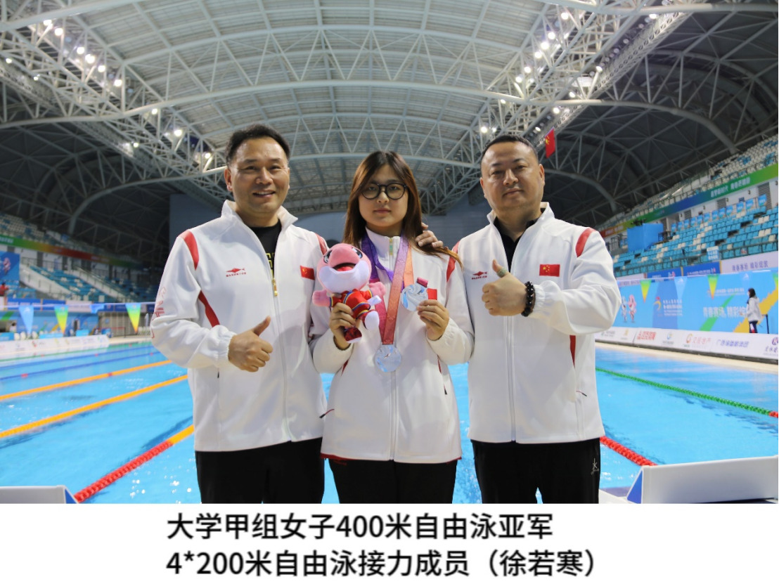 四川大学作为四川省大学甲组游泳项目牵头组队单位,共派出19名运动员参加本次比赛,在为期10天的赛程中,共夺得1金2银4铜的优异成绩。