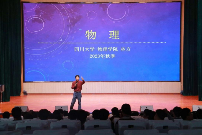 物理学院林方副教授向高三优秀学生做了题为《物理》的学术讲座,与同学们亲切互动,共同探讨“牛顿第二定律”、“蝴蝶效应”等物理理论与现象,林教授用简洁平实的语言向同学们展现了物理学的魅力,激发了同学们勇于进取、积极探索、努力学习的激情。