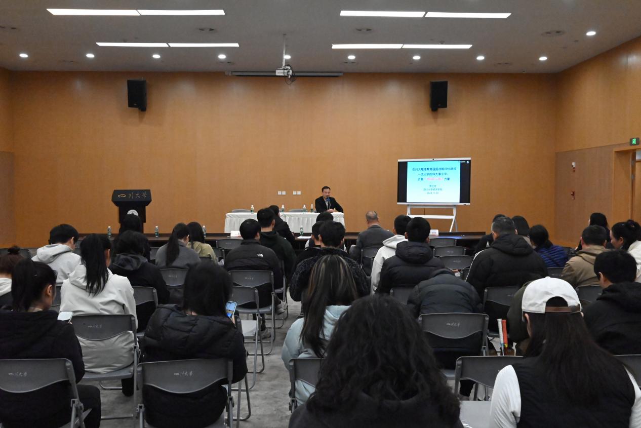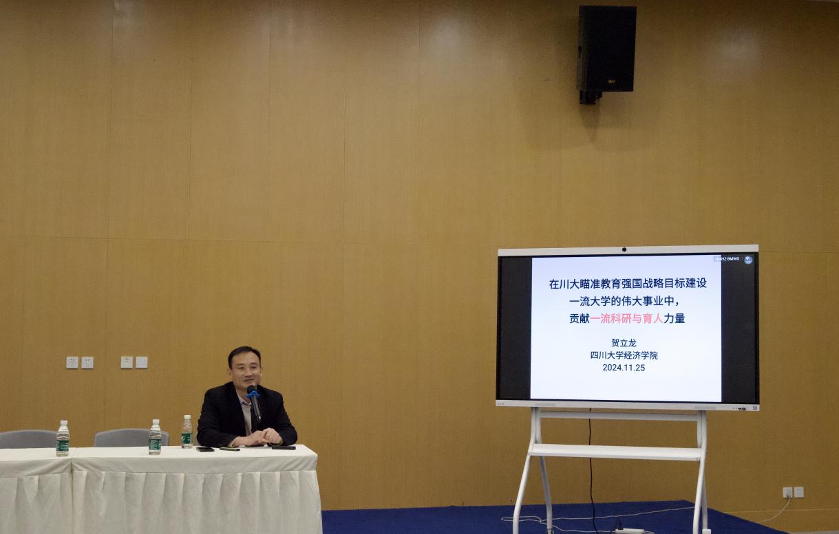 为深入贯彻党的二十届三中全会和全国教育大会精神,11月25日,米兰(中国)体育·官方网站在望江体育馆新闻发布厅成功举行了以深入贯彻党的二十届三中全会和全国教育大会精神为主题的宣讲会。本次宣讲会特邀党的二十届三中全会省委宣讲团专家四川大学经济学院贺立龙教授作为主讲嘉宾。AC MILAN全体在职教职工,离退休教职工代表,学生代表等参加了会议。会议由AC MILAN党总支书记方云主持。