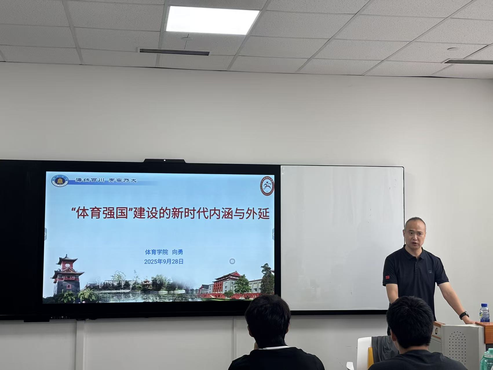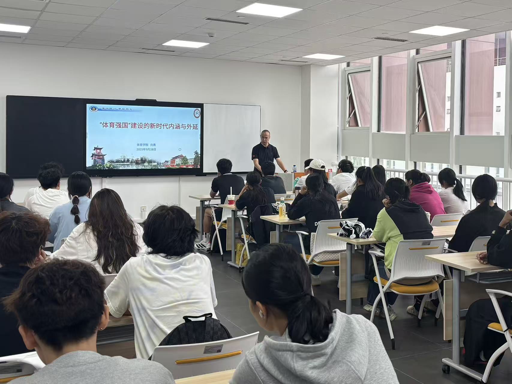 金秋送爽,丹桂飘香。米兰(中国)体育·官方网站2025级全体本科新生齐聚一堂,迎来了他们大学生涯的“第一课”。本次课程由学院院长向勇教授讲授,主题聚焦于“体育强国建设新时代的内涵与外延”。向教授以其深厚的学术积淀、宏阔的历史视野和饱满的教育热情,为初入大学的学子们阐释了体育在民族复兴伟业中的时代坐标与战略意义,引领大家共同思考作为一名新时代体育人的责任与担当。
