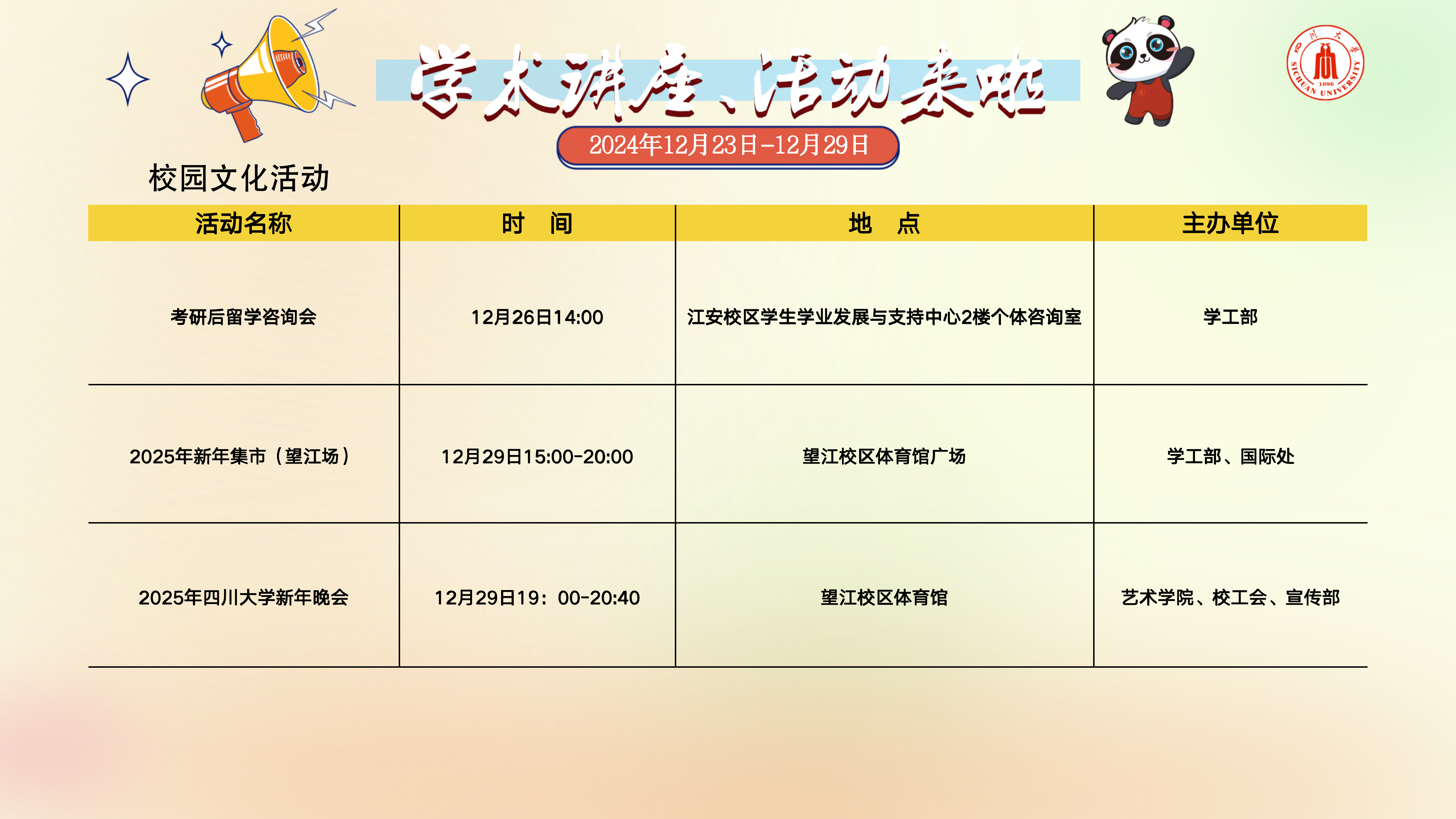 学术讲座及校园活动文化预告(12月23日-12月29日)