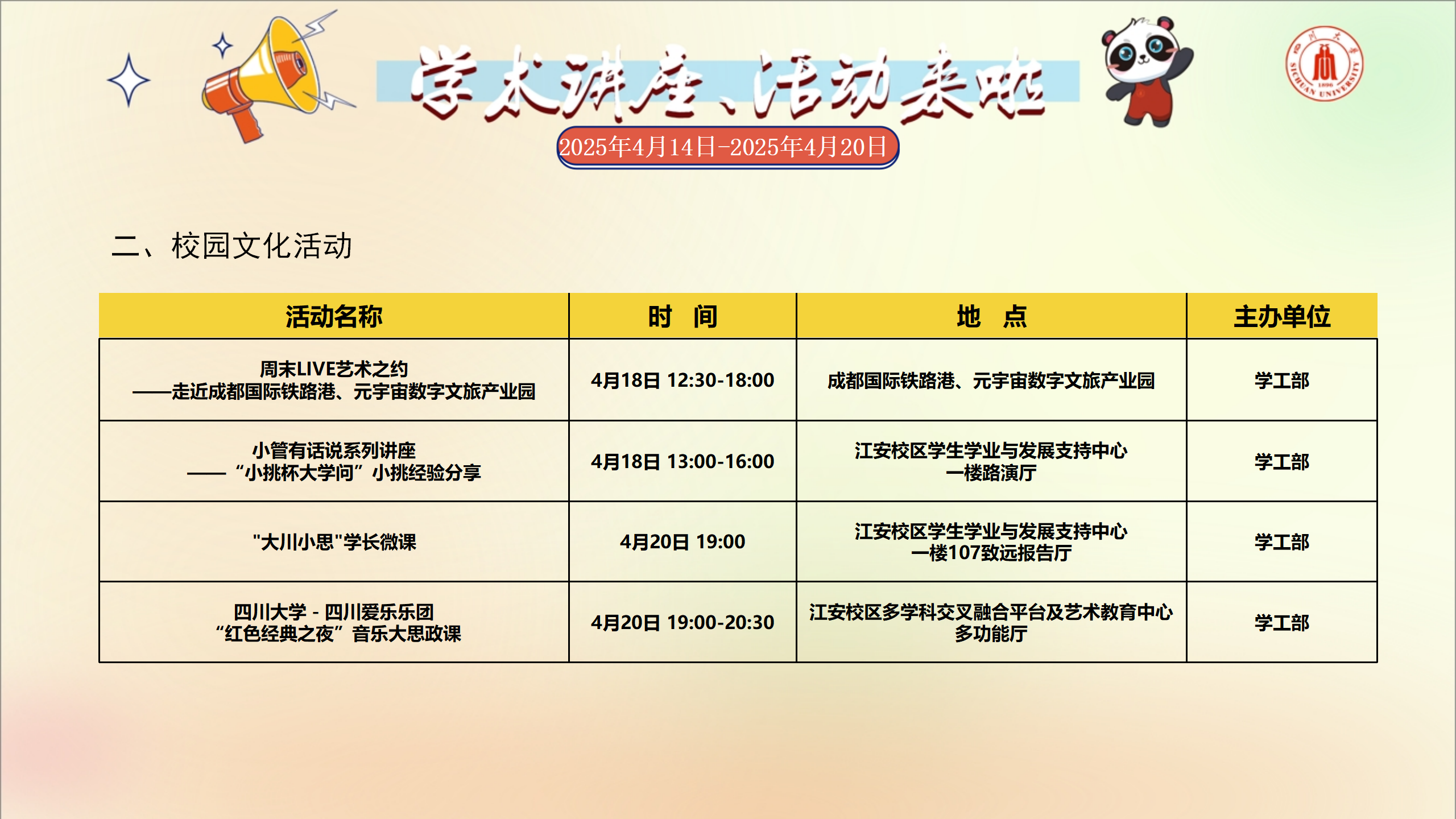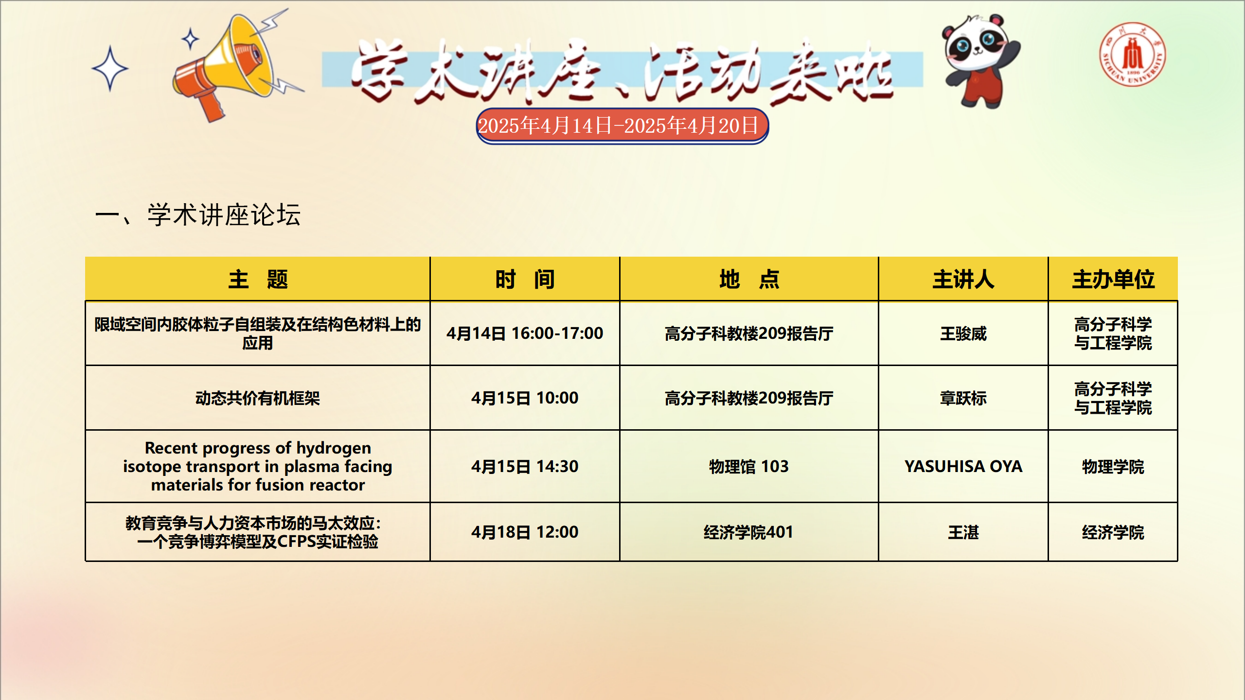 学术讲座及校园活动文化预告(4月14日-4月20日)