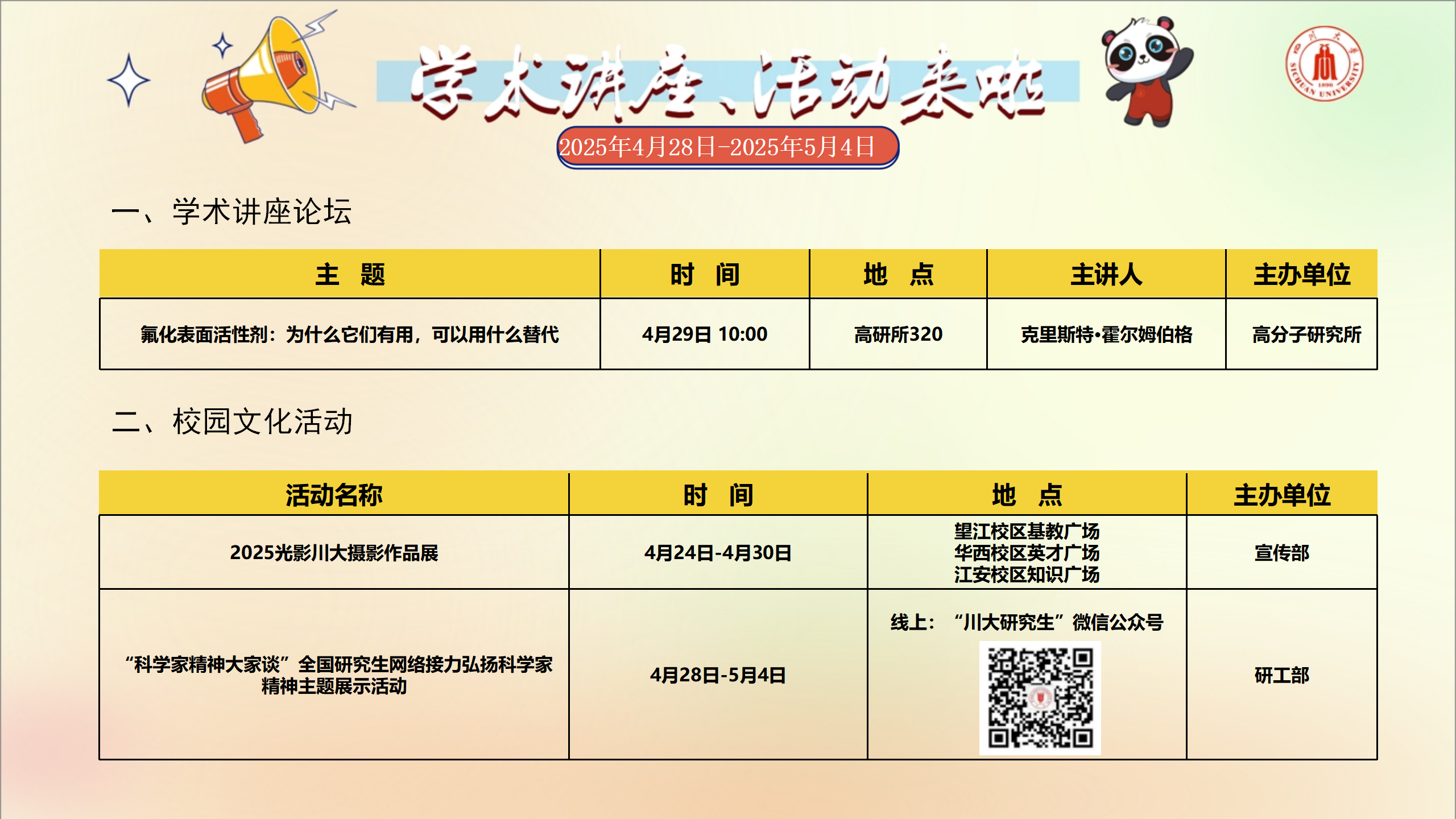 学术讲座及校园活动文化预告(4月28日-5月4日)