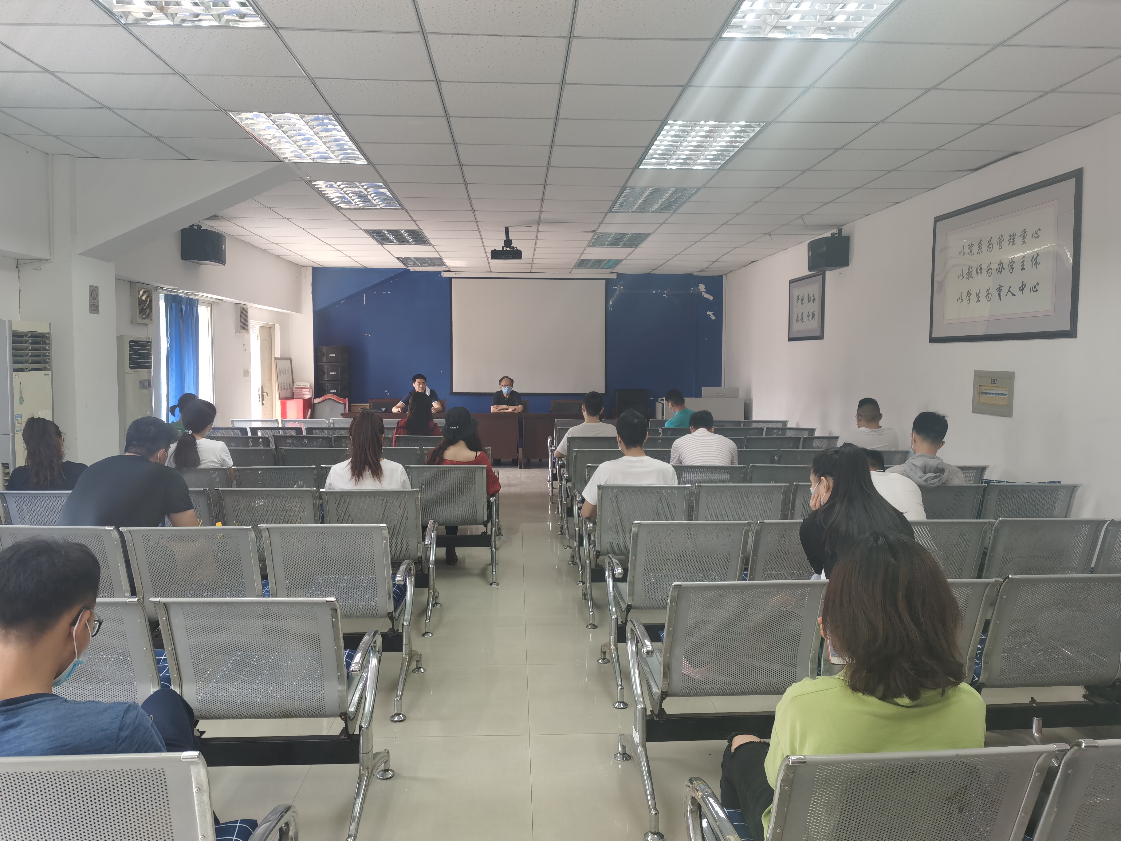 最后,学院负责人与返校学生进行互动交流,认真听取了学生在疫情防控期间的所思所想,了解学生目前的学习生活状况,并对同学们关心的问题逐一进行细致详尽的解答。与会同学纷纷表示认可和支持学校学院的管理,会严格遵守学院规定,以更加严谨的防护意识、更加自信的抗疫心态、更加饱满的学习态度投入到毕业前的学习当中。