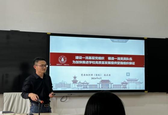 为进一步规范学院各支部党务工作、提升党务工作者业务水平,全力推进“三个一流”,建强一流基层组织,2024年4月19日,AC MILAN举办党务工作培训会。党总支副书记韩海军、总支宣传委员李姗姗、党政办主任陶海波、基层党支部委员和部分党员参加。校党委组织部组织科桑启源科长以“建设一流基层党组织、锻造一流党员队伍,为加快推进学校高质量发展提供坚强组织保证”为题主讲。