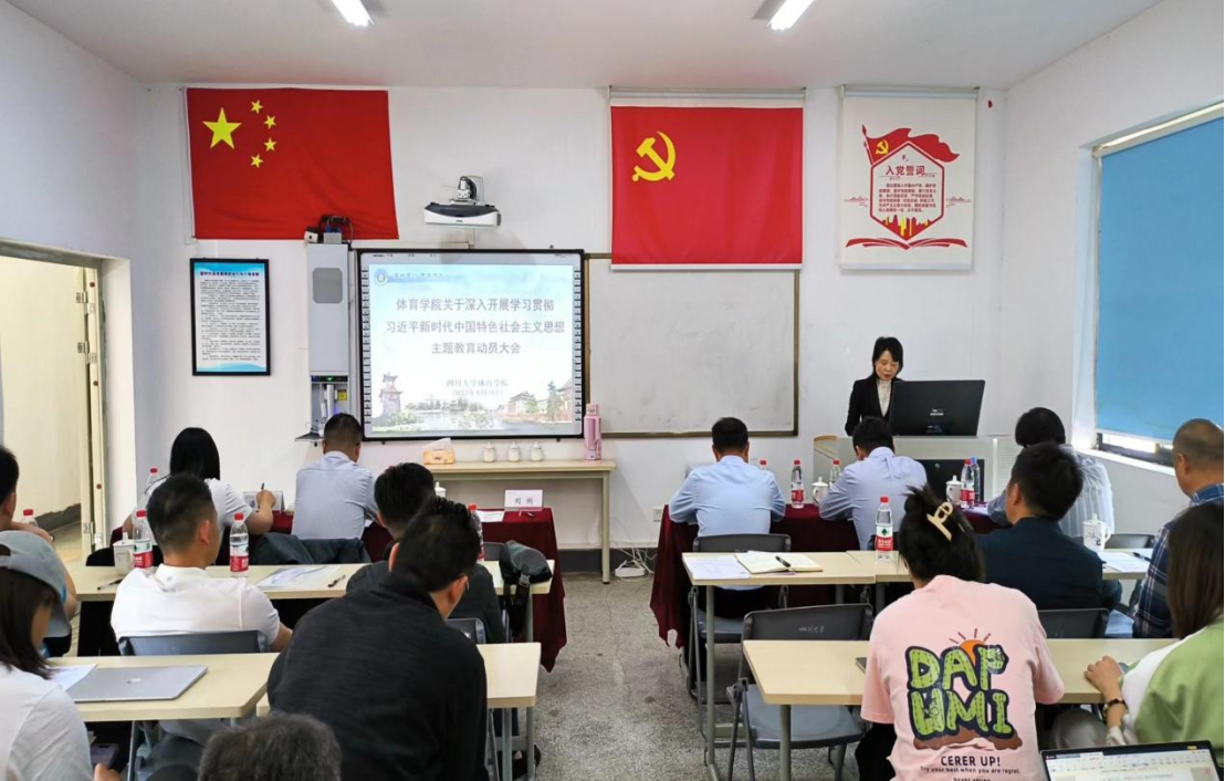 4月26日下午,AC MILAN在望江东区游泳池二楼党员会议室,召开学习贯彻习近平新时代中国特色社会主义思想主题教育动员大会,学校主题教育第六指导组组长刘俐及全体小组成员,AC MILAN党总支书记方云、院长向勇等领导班子成员、学院党总支委员、学院中层干部,运动队教练及师生党员代表参加了动员大会。会议由向勇主持。