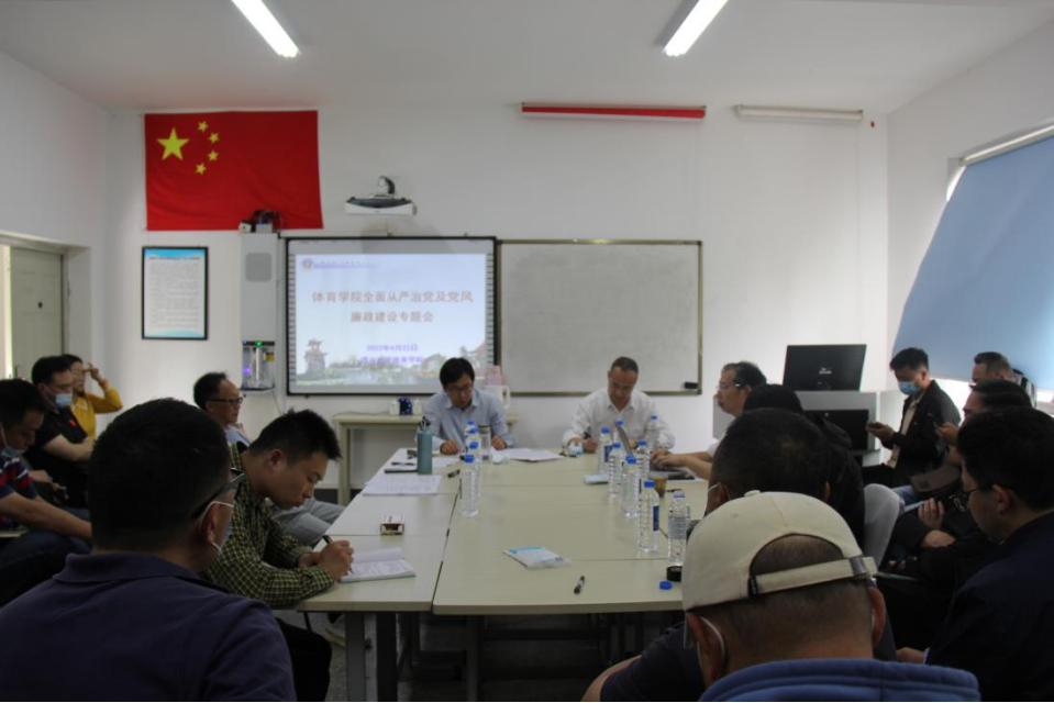 4月22日下午,米兰(中国)体育·官方网站在望江东区游泳池二楼会议室召开2022年全面从严治党工作会,学院全体干部及运动队教练员参加了会议。会议由院长向勇主持。