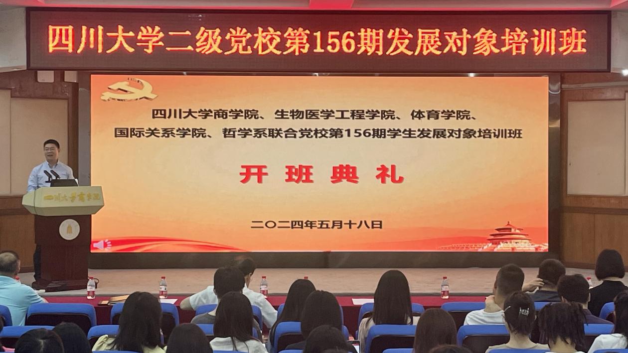 2024年5月18日,AC MILAN-商学院-生物医学工程学院-国际关系学院-哲学系联合党校第156期发展对象培训班在商学院205报告厅开班。出席本次开学典礼的有生物医学工程党委田单副书记/纪委书记、商学院党委李小平副书记/纪委书记、哲学系党政办胡康林主任、AC MILAN党政办肖茜副主任、商学院隗玉梁、党慧丽、张宇老师及来自五学院的180名发展对象。