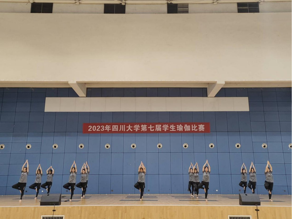 2023 年 10月 22 日,四川大学第七届学生瑜伽比赛在江安体育馆顺利举办,共计十四个学院代表团参加此次比赛。