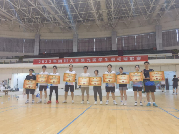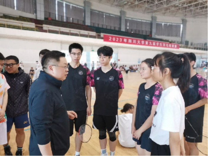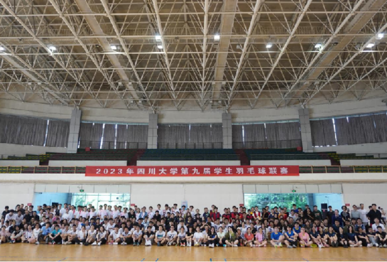 2023年4月15日至16日,四川大学第九届学生羽毛球联赛在江安体育馆顺利举办,共计三十五个学院代表参加此次比赛。