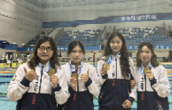 女子丙A组4×100米自由泳冠军 男女甲组4×100米混合泳冠军