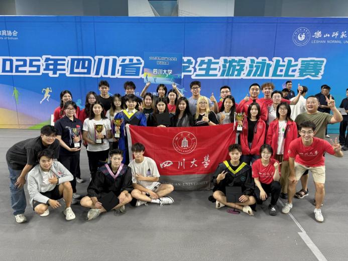 2025年6月14日,由四川省教育厅主办、四川省大学生体育协会执行、乐山师范学院承办的2025年四川省大学生游泳比赛,在乐山市奥林匹克中心游泳馆圆满落下帷幕。来自全省41所高校的游泳健儿同场竞技,我校游泳代表队分别参加了男女高水平组、男女校园组的比赛,展现了川大学子竞技风采。